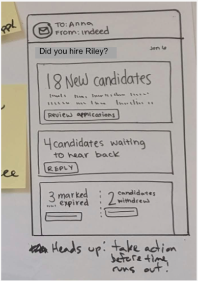 Historically, small tweaks to Indeed’s communication tools had been ineffective, so a larger effort was in order. To that end, a workshop was organized to examine the problem, talk to employers and job seekers in person, and understand their current experiences. Having one team work on a solution for both employers and job seekers was outside of Indeed’s siloed structure. But communication is a two-sided problem, and we needed to solve it as one challenge.